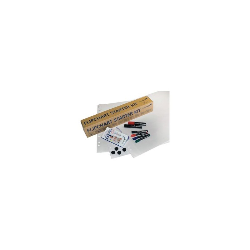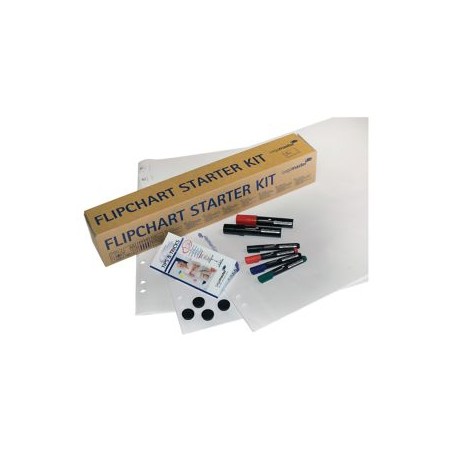 Zawiera: 3 szt. 20 kartkowe bloki do flipchartów, 2 grube markery do flipchartów w kolorze czarnym i czerwonym, 4 cieńsze markery w kolorach: czarny, czerwony, niebieski, zielony, 4 magnesy o średnicy 2 cm, małą książeczkę z praktycznymi poradami