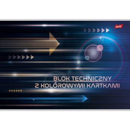 Blok zawiera 10 kolorowych kartek o gramaturze 160 g/m2. Kartki barwione w masie w kolorach żółty, łosoś, różowy, pomarańczowy, fioletowy, czerwony, jasnozielony, ciemnozielony, jasnoniebieski, ciemnoniebieski. Okładka kredowa o gramaturze 115 g/m2 wykorzystuje najnowsze motywy wzornicze UNIPAP. Dla podkreślenia, jakości wykończenia okładka jest dodatkowo nabłyszczana. Całość usztywniona tekturowym podkładem.
