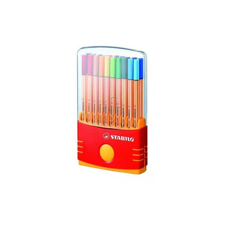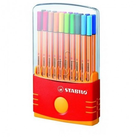 Zestaw cienkopisów Point 88 Niezaprzeczalny Numer 1 w Polsce wśród cienkopisów. Niezawodny znak rozpoznawczy: jasne, podłużne paski na pomarańczowej obudowie. Grubość linii 0,4 mm - idealna do pisania oraz pracy z linijką lub szablonem. Dodatkowe zalety to wyjątkowo mocna końcówka, oprawiona w metal oraz wentylowana skuwka (umożliwia oddychanie w przypadku połknięcia). Plastikowe, sztywne pudełko umożliwiające łatwy wybór kolorów o wymiarach: 111x360x195 mm. zawiera 20 szt. w kolorach: 22, 26, 32, 33, 36, 40, 41, 44, 45, 46, 50, 51, 53, 54, 55, 56, 57, 58, 89, 96.