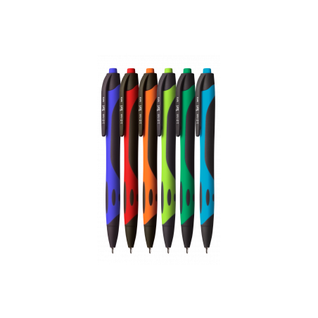 Grubość linii pisania: 1,0 mm. Mix kolorów obudowy. Wkład niebieski. Opakowanie: