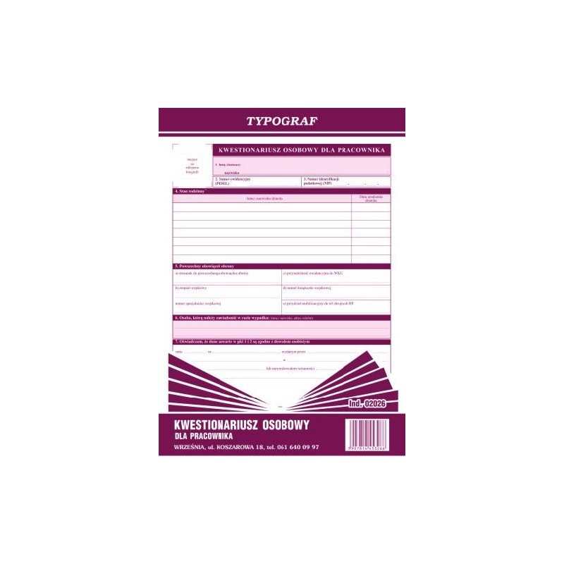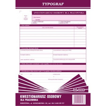 KWESTIONARIUSZ OSOB.DLA PRACOWNIKA A4 02026 OFF