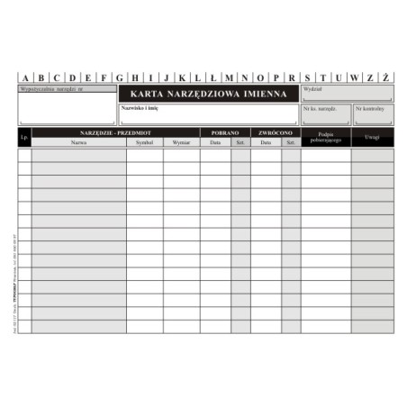 KARTA NARZĘDZIOWA IMIENNA 02117 TYPOGRAF