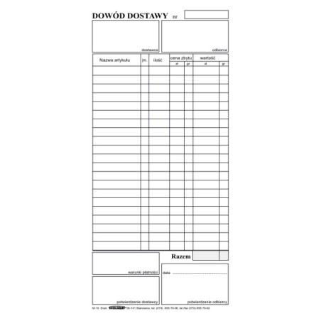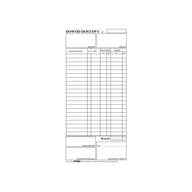 DOWÓD DOSTAWY 1/3 A4 STOLGRAF M-19