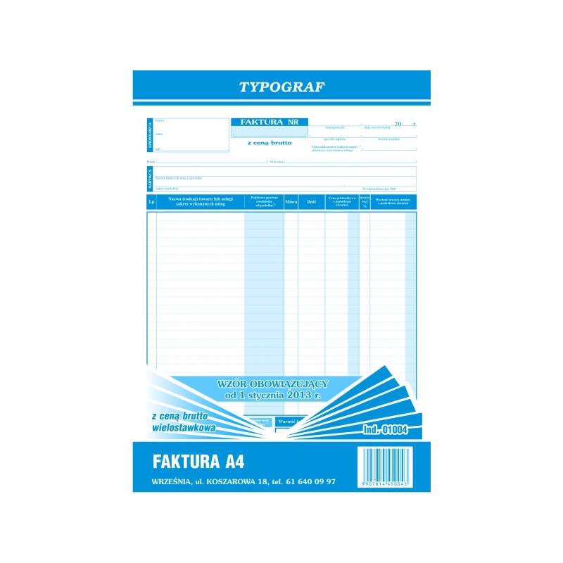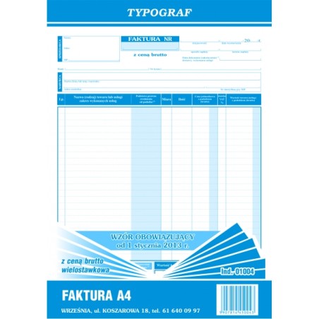 FAKTURA VAT A4 BRUTTO TYPOGRAF 01004