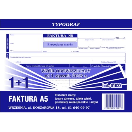 FAKTURA MARŻA A5 1+1 TYPOGRAF 01022 NOWY WZ.