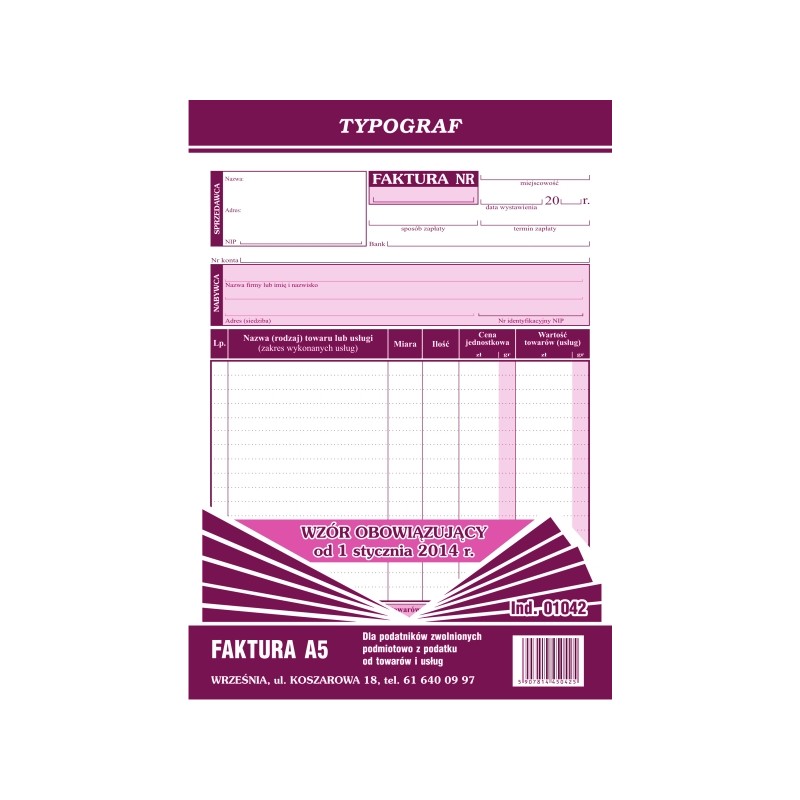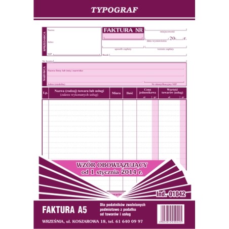 FAKTURA A5 (s) BEZ VAT PION TYPOGRAF 01042