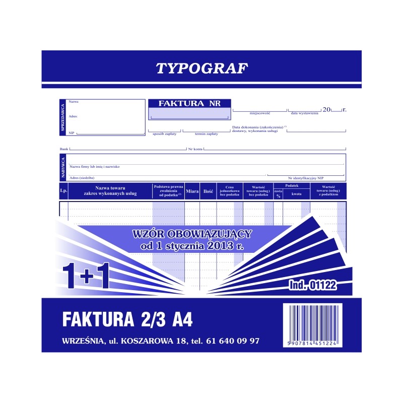FAKTURA VAT 2/3 A4 1+1 TYPOGRAF 01122 NOWY WZ.