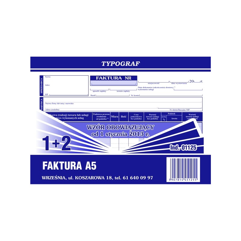 FAKTURA VAT A5 1+2 TYPOGRAF 01125