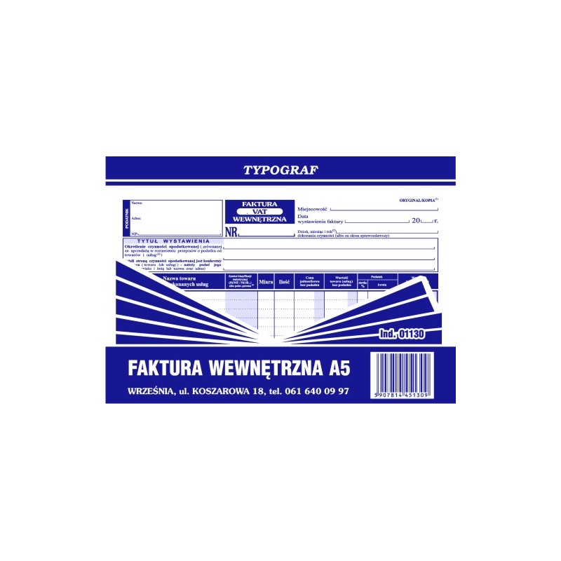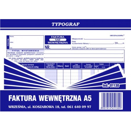 FAKTURA WEWNĘTRZNA A5 TYPOGRAF 01130