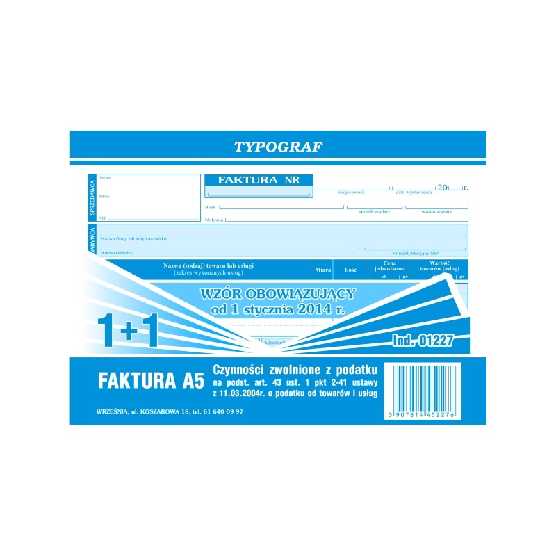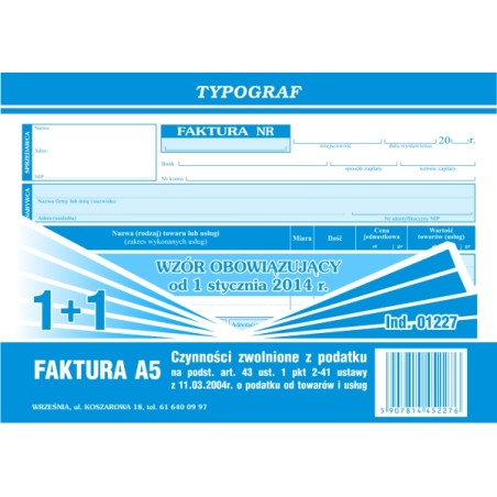 FAKTURA A5 1+1 BEZ VAT ART. 43 01227 TYPOGRAF