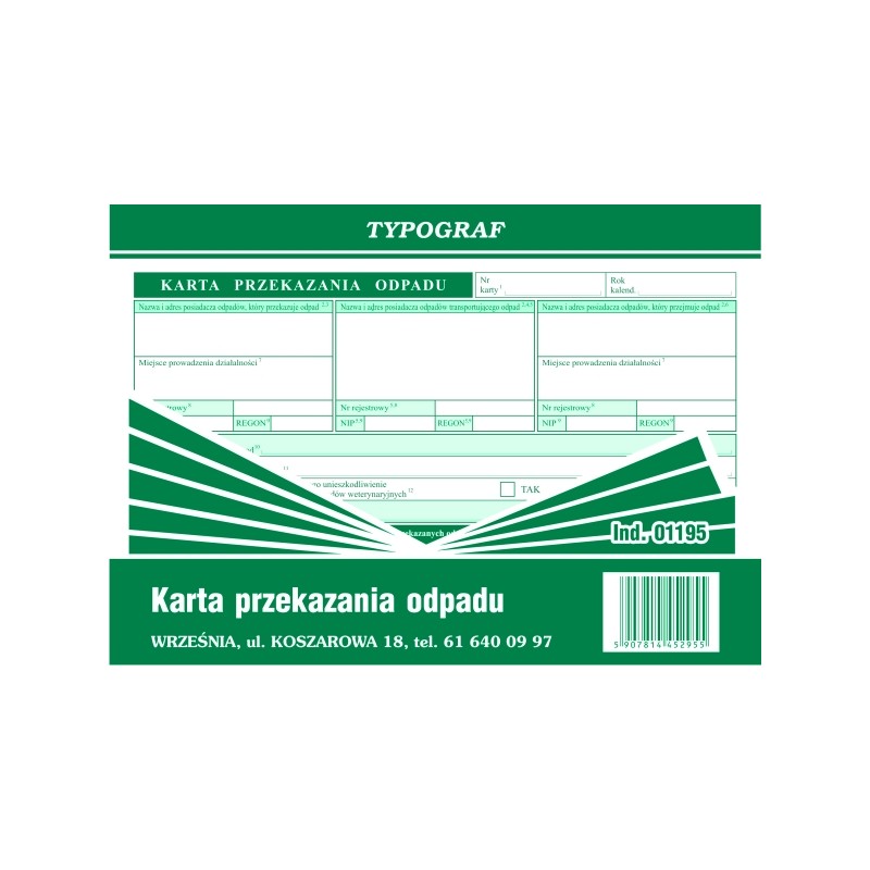 KARTA PRZEKAZANIA ODPADU A5 (s) TYPOGR. 01195