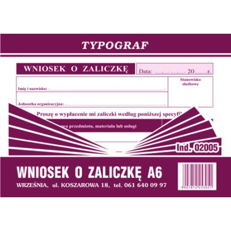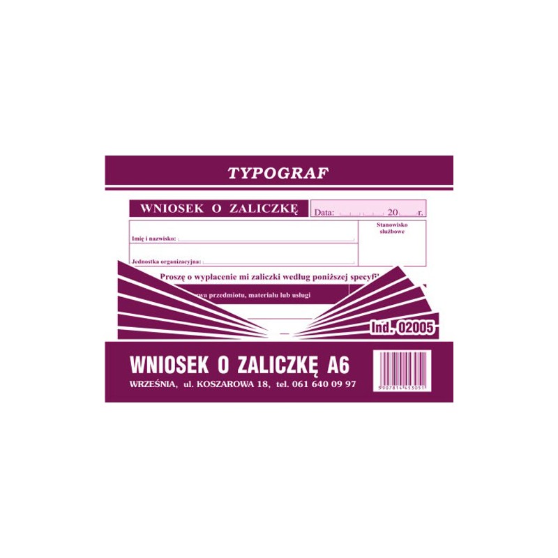 WNIOSEK O ZALICZKĘ A6 TYPOGRAF 02005