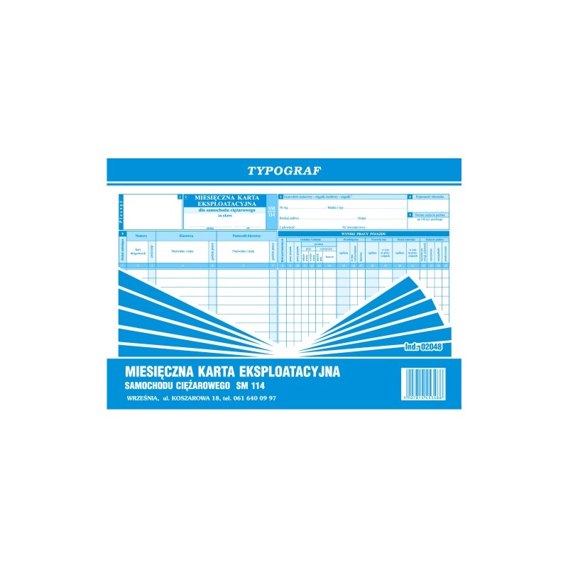 MIESIĘCZNA KARTA EKSLOATACYJNA A4 Sm114 02048