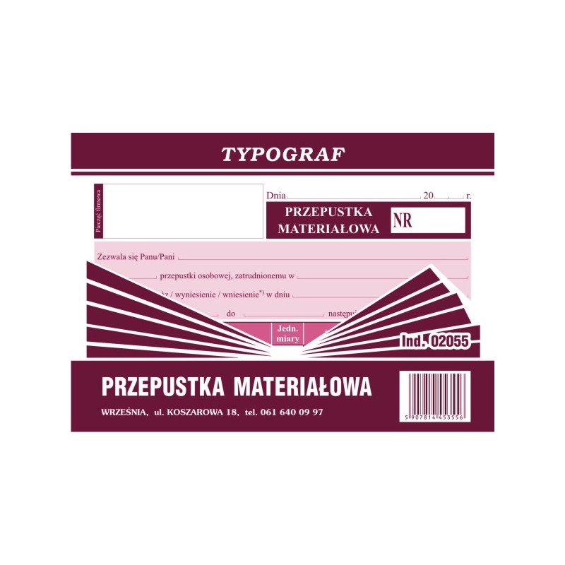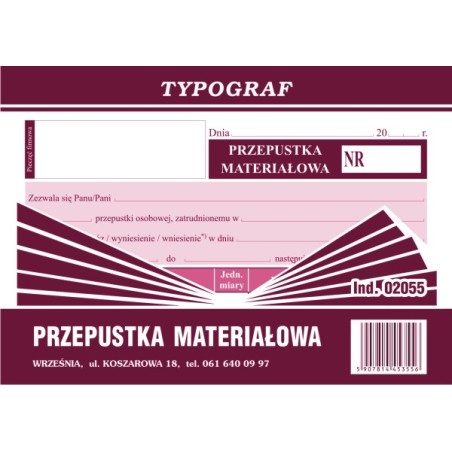 PRZEPUSTKA MATERIAŁOWA A6 OFF TYPOGR. 02055