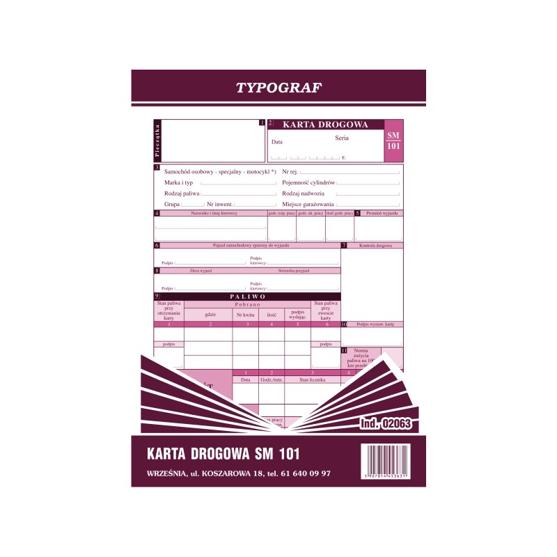 KARTA DROGOWA A5 SM-101 TYPOGRAF 02063