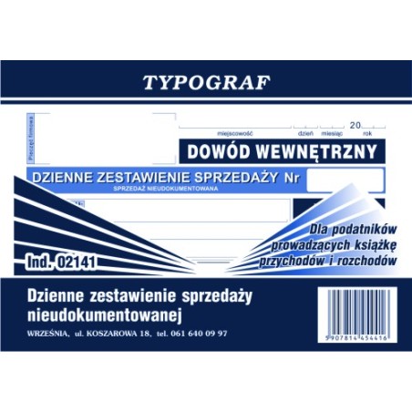 DZIENNE ZESTAWIENIE SPRZEDAŻY NIEUDOK. TYPO. 02141