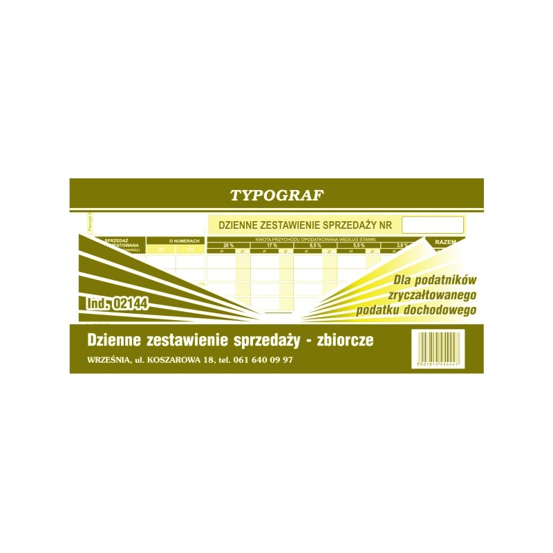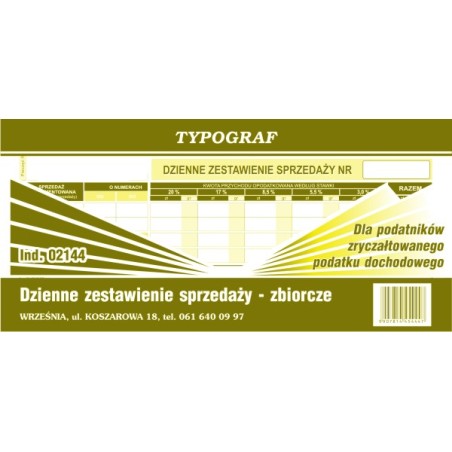 DZIENNE ZESTAWIENIE SPRZED. RYCZAŁT ZBIORCZ. 02144