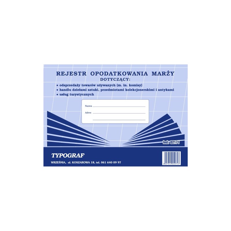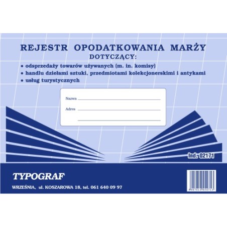 REJESTR OPODATKOWANIA MARŻY A4 TYPOGR. 02171