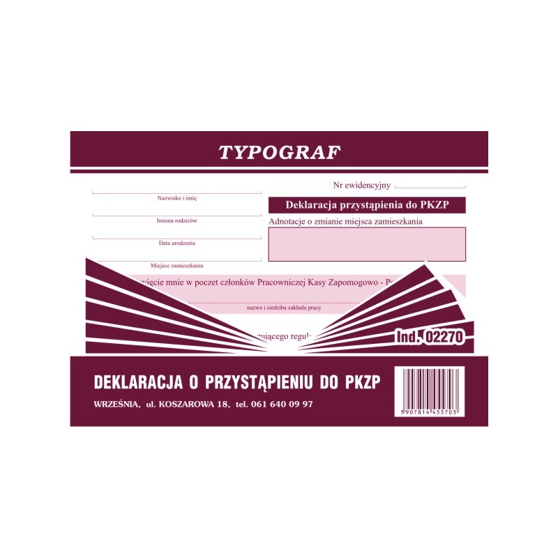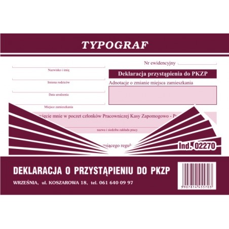 DEKLARACJA PRZYST. DO PKZP A6 TYPOGRAF 02270