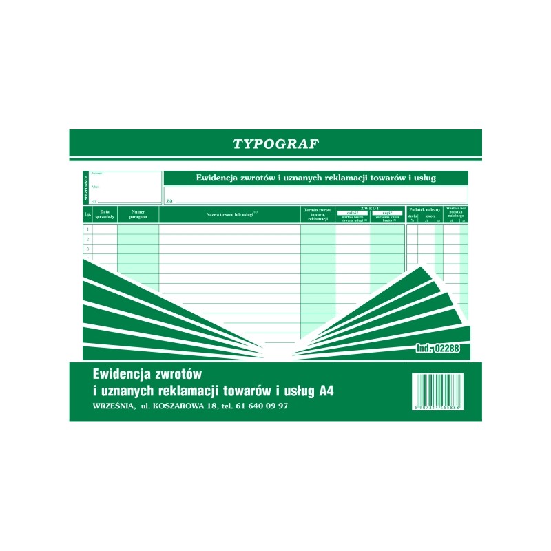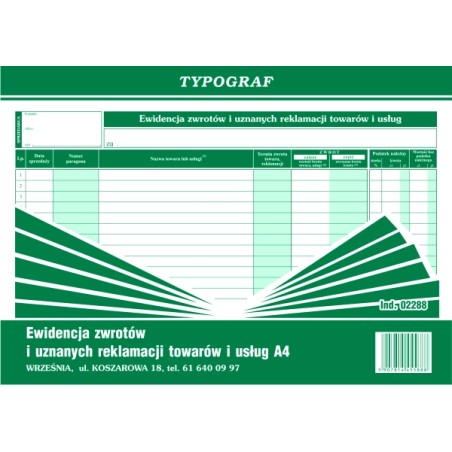 EWIDENCJA ZWROTÓW I UZNANYCH REKL.TOW.I USŁ. 02288