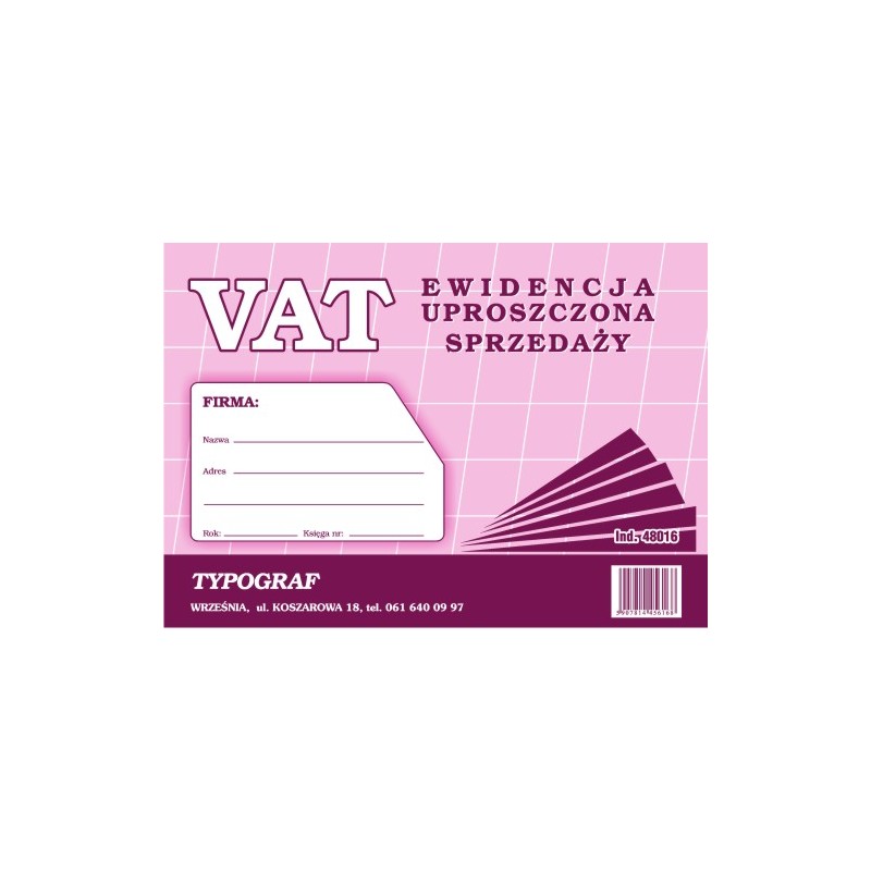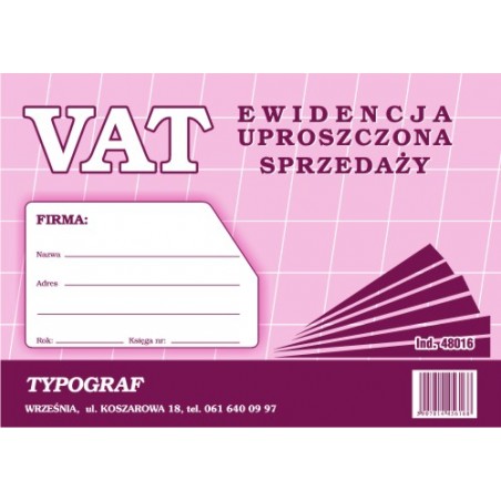 EWIDENCJA UPROSZCZONA VAT A5 TYPOGRAF 48016