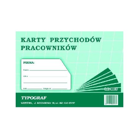 KARTY PRZYCHODÓW PRACOWNIKA TYPOGR. 48018