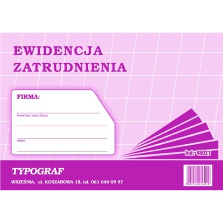 EWIDENCJA ZATRUDNIENIA A5 TYPOGRAF 48021