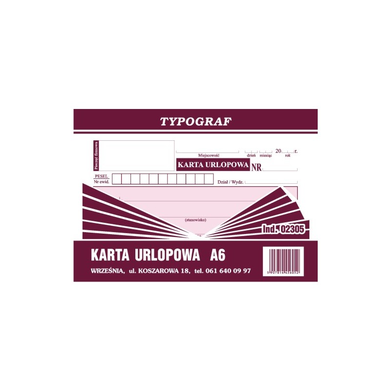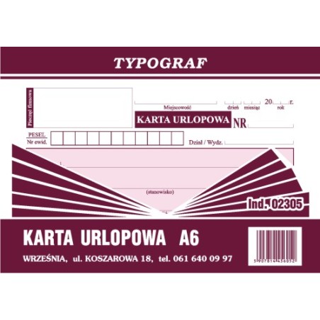 KARTA URLOPOWA A6 TYPOGRAF OFF 02305