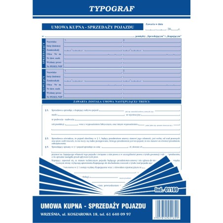 UMOWA KUPNA SPRZEDAŻY POJAZDU A4 40k TYPOGR. 01169
