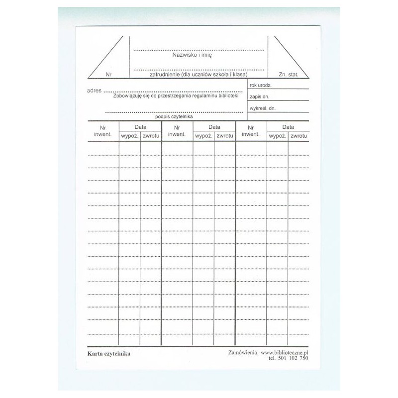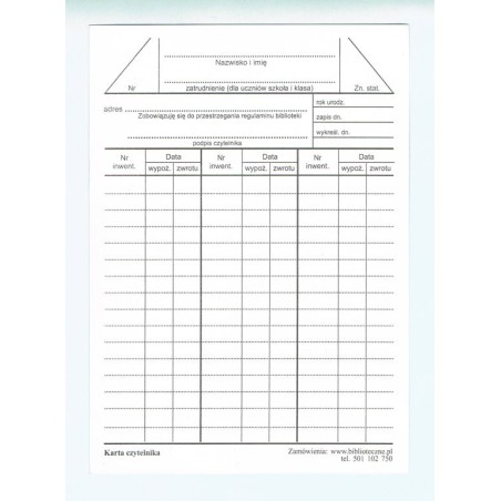 sklep oferuje karty czytelnika drukowane na kartonie o gramaturze 250 m/g