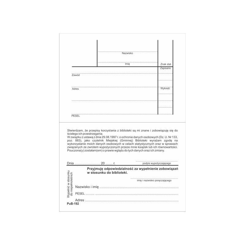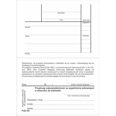 KARTA ZAPISU ZOBOWIĄZAŃ a'100 PuB-192