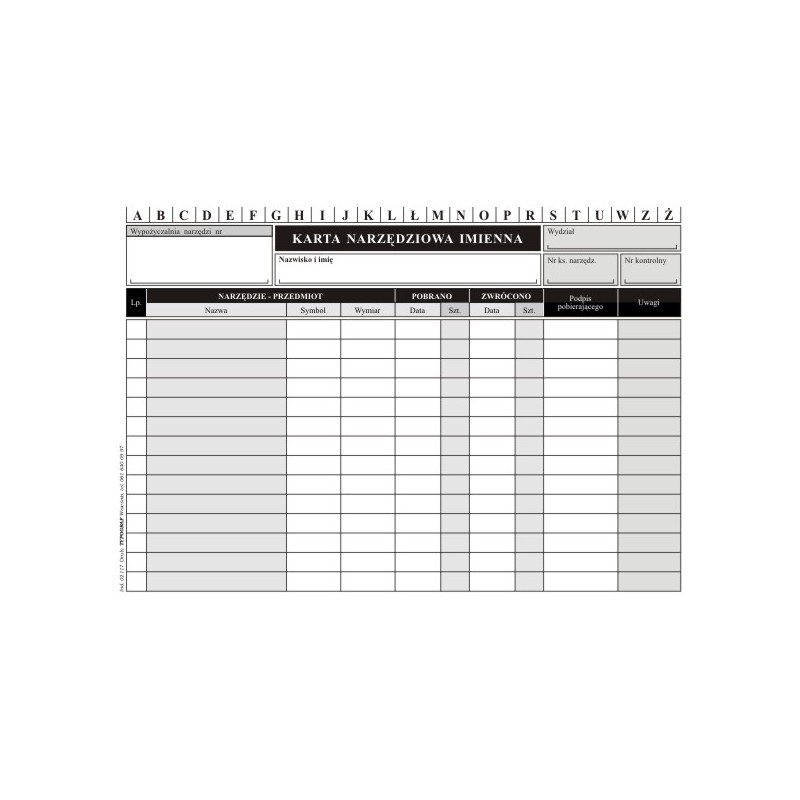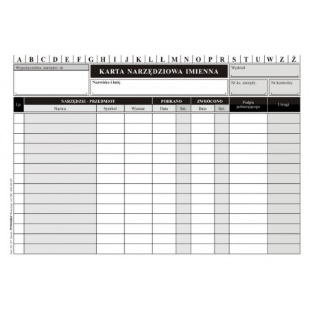 KARTA NARZĘDZIOWA IMIENNA A5 a'100