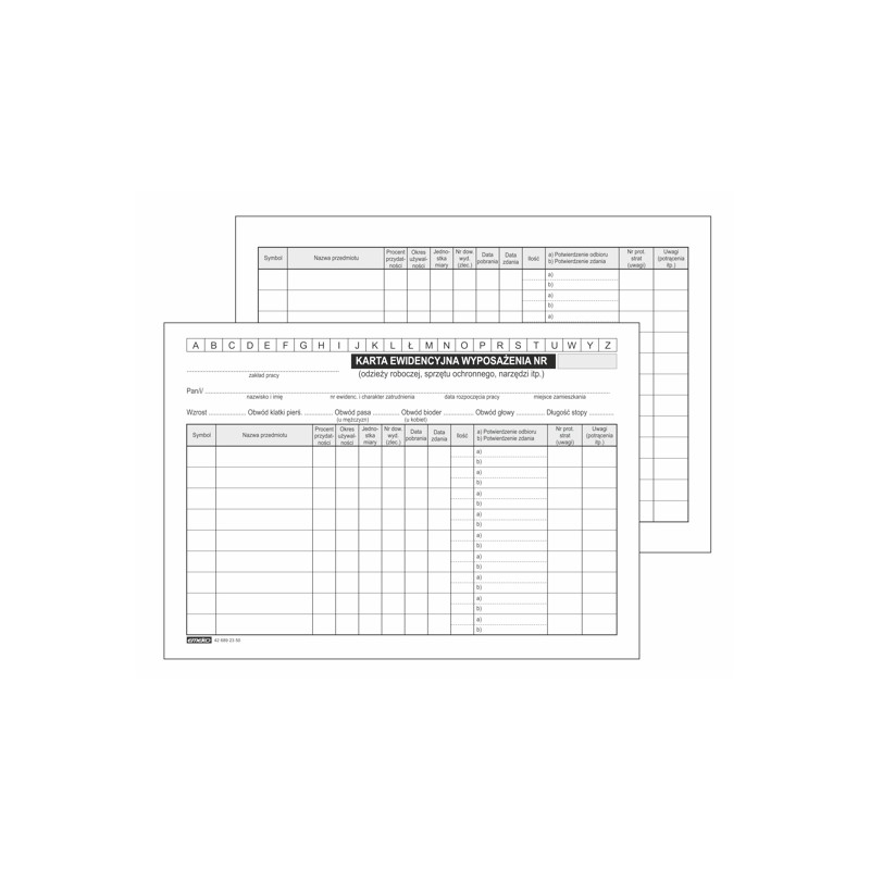 KARTA EWIDENCYJNA WYPOSAŻENIA a'50 035