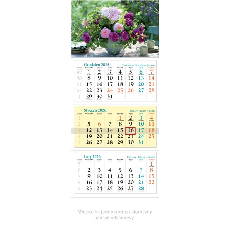 KALENDARZ TRÓJDZIELNY KWIATY KT15