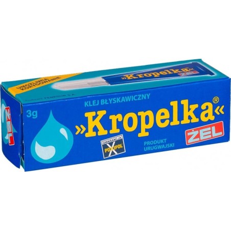 KROPELKA® jest klejem błyskawicznym, łatwym w użyciu, służącym do drobnych napraw w domu. Skleja w kilka sekund praktycznie każdego rodzaju materiały. Używa się go do napraw w domu, do prac hobbystycznych, i rękodzielniczych, oraz ogólnie przy różnego rodzaju czynnościach praktycznych.