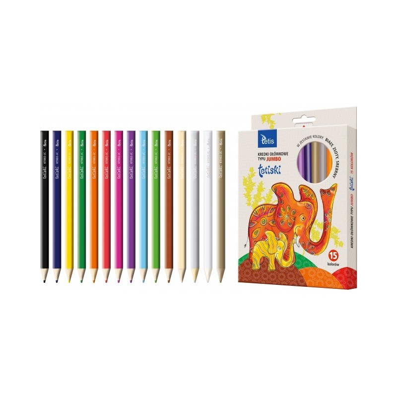 Kredki ołówkowe typu JUMBO, trójkątny kształt, miękki grafit o średnicy 5 mm, długość: 176 mm, w opakowaniu 15 szt. kolor złoty i srebrny