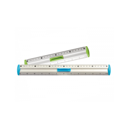 Linijka wykonana z aluminium ze skalą po dwóch stronach. Posiada wygodny uchwyt na ołówek.