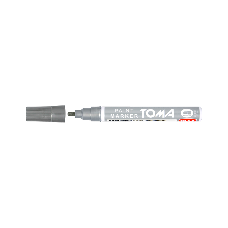 Marker olejowy, fibrową końcówką 2.5mm. Szybkoschnący, wodoodporny tusz olejny, niezmywalny, do zastosowania na wszystkich powierzchniach, do opisywania różnych przedmiotów, nawet w trudnych warunkach warsztatowych, zawartość około 10ml.