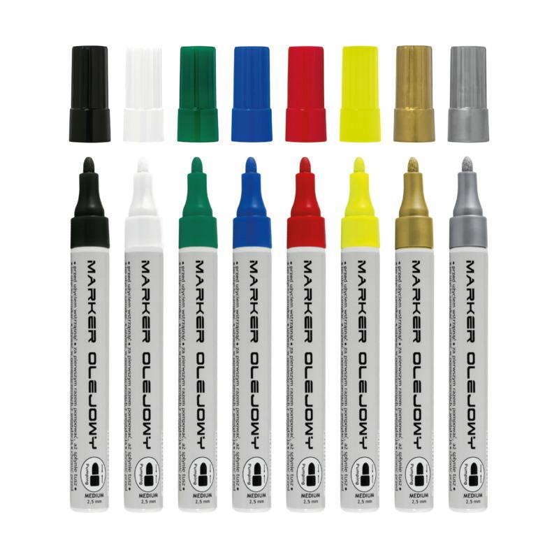 Marker olejny z akrylową końcówką o grubości 2,5 mm. Zawartość markera to około 10ml tuszu. Do wyboru osiem wyrazistych kolorów.