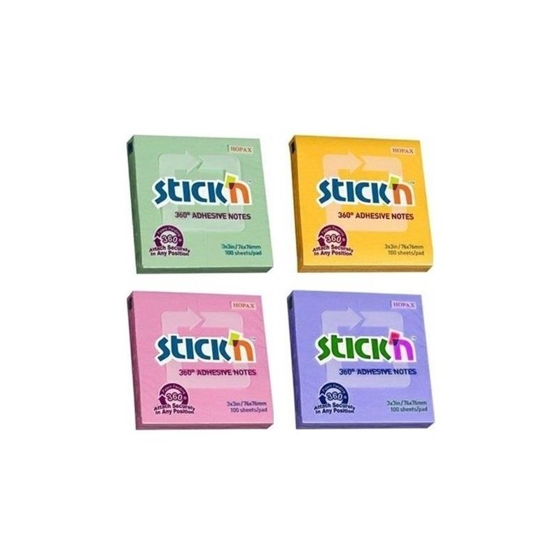 o wymiarach 76x76 mm z klejem umieszczonym wokół wszystkich krawędzi karteczki.