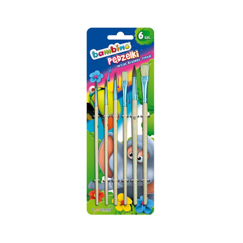 i uniwersalny zestaw 6 pędzelków szkolnych w rozmiarach: 2, 4, 6, 8, 10 i 12.