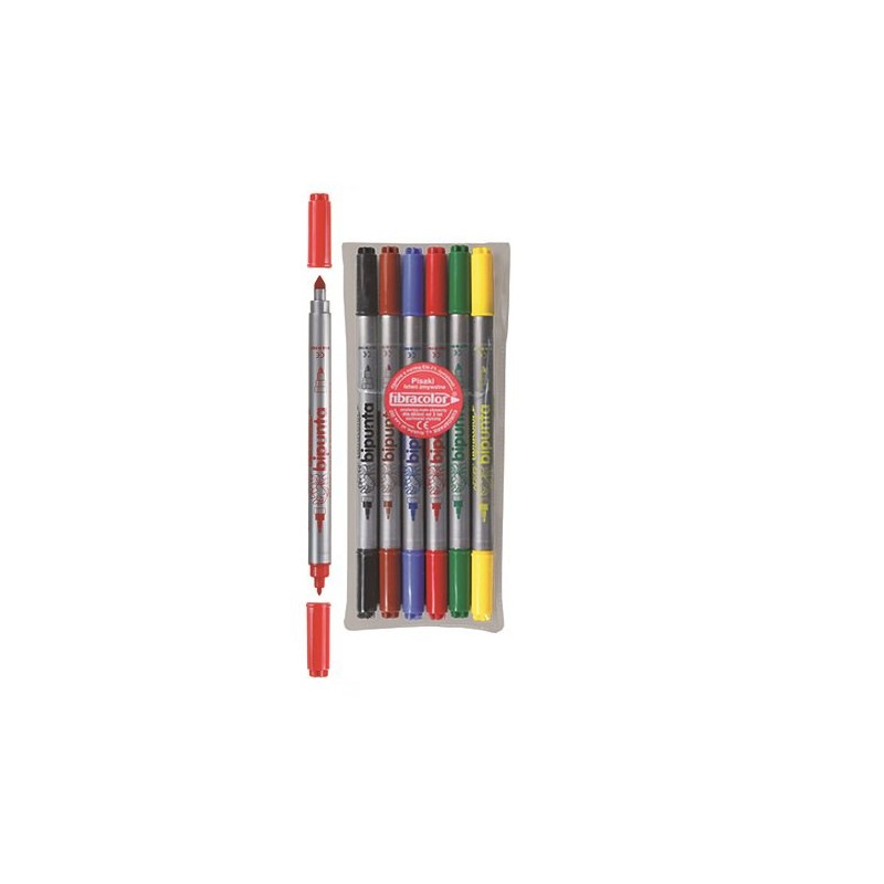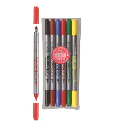 Pisaki dwustronne DOUBLE POINT BIPUNTA w zestawie znajduję się 6 kolorów zapakowanych w etui. Dwie wytrzymałe końcówki: cienka oraz stożkowa umożliwiają uzyskanie trzech rodzajów linii, tusz o intensywnych czystych barwach, łatwo zmywalny z rąk i materiałów, wentylacyjne zatyczki, długotrwałe działanie.