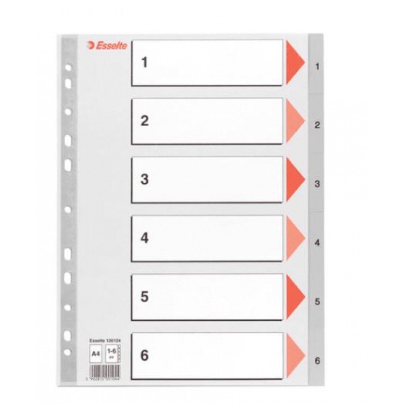 PRZEKŁADKI ESSELTE PP SZARE A4 NUMERYCZNE 1-6