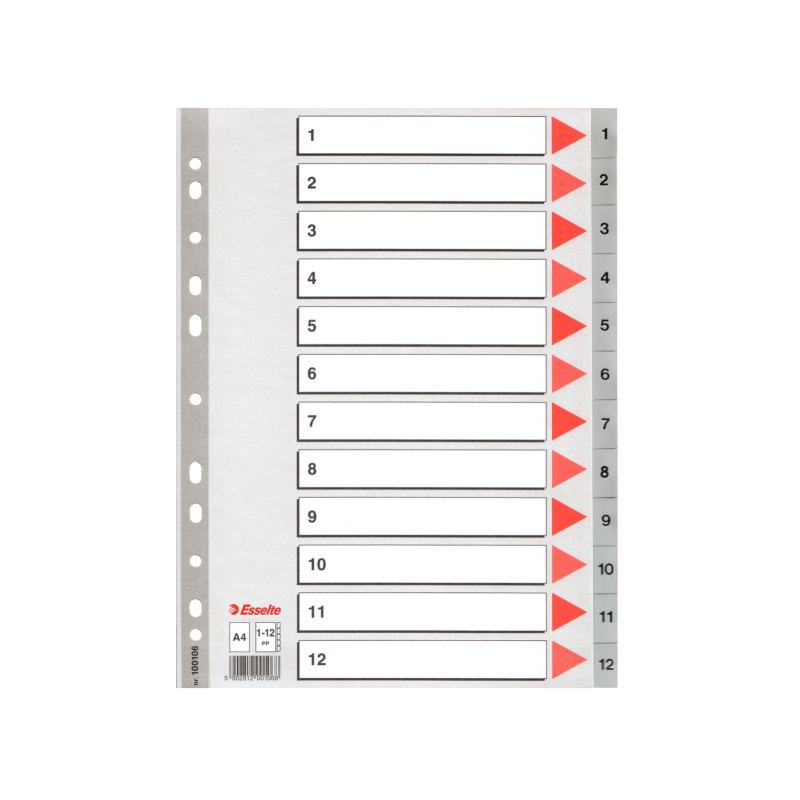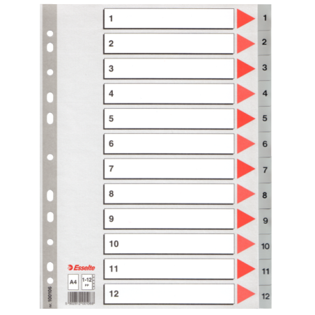 Przekładki plastikowe szare PP numeryczne A4 Esselte, 1-12