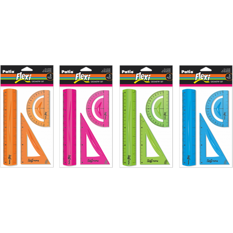 Zestaw geometryczny "FLEXI"-w zestawie znajduje się linijka 20cm,kątomierz i ekierka 60'-wysokiej jakości tworzywo-4 żywe kolory