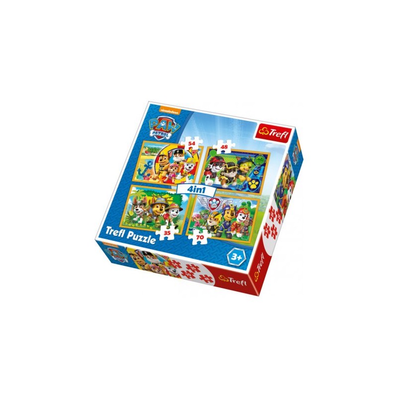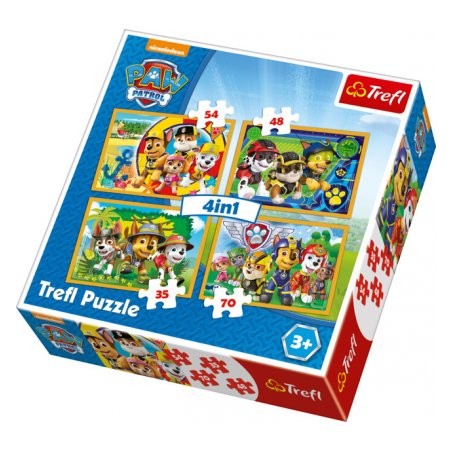 Puzzle 4w1 "Zawsze na czas" z bohaterami serialu "Psi Patrol" to cztery różne układanki. Każdy obrazek jest innej treści. Każdy z nich jest tej samej wielkości, różnią się jednak liczbą puzzli i wielkością pojedynczego elementu.