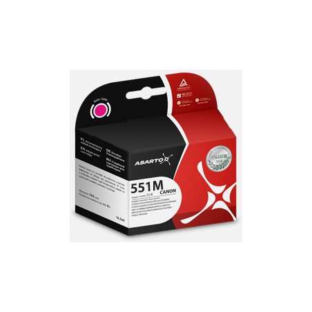 Purpurowy produkt o nr. kat. AS-C551M marki Asarto to w pełni kompatybilny zamiennik kartridża Canon 6510B001. Wkład pasuje do urządzeń Canon Pixma iP7250/ 8750/ 6850/ 5450/ MG5550/ 6350/ 6450/ 7150/ MX725/ MX925. Tusz jest wyposażony w 11,4 ml atramentu.